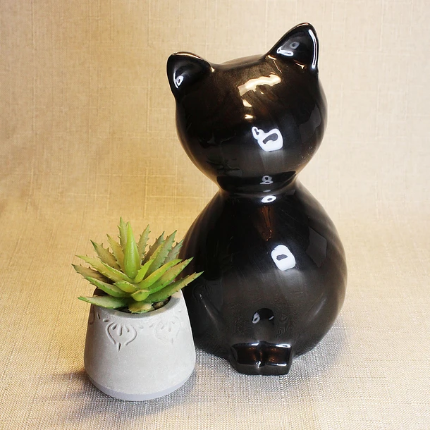 Elegante ánfora de Bronce con forma de Gatito color Negro Elegante.